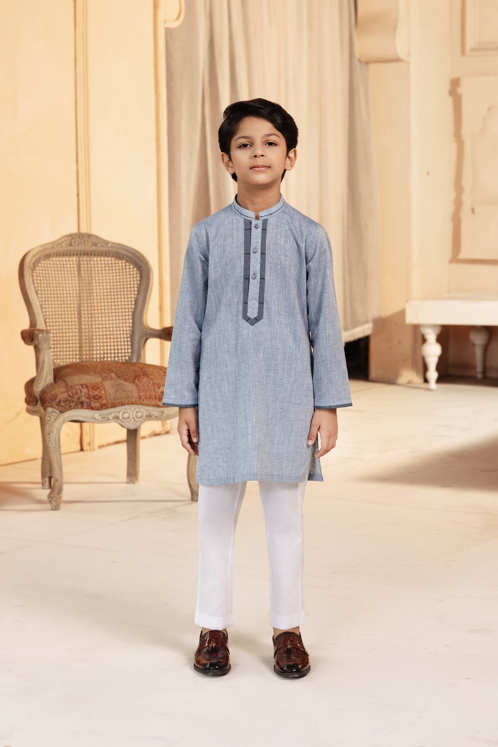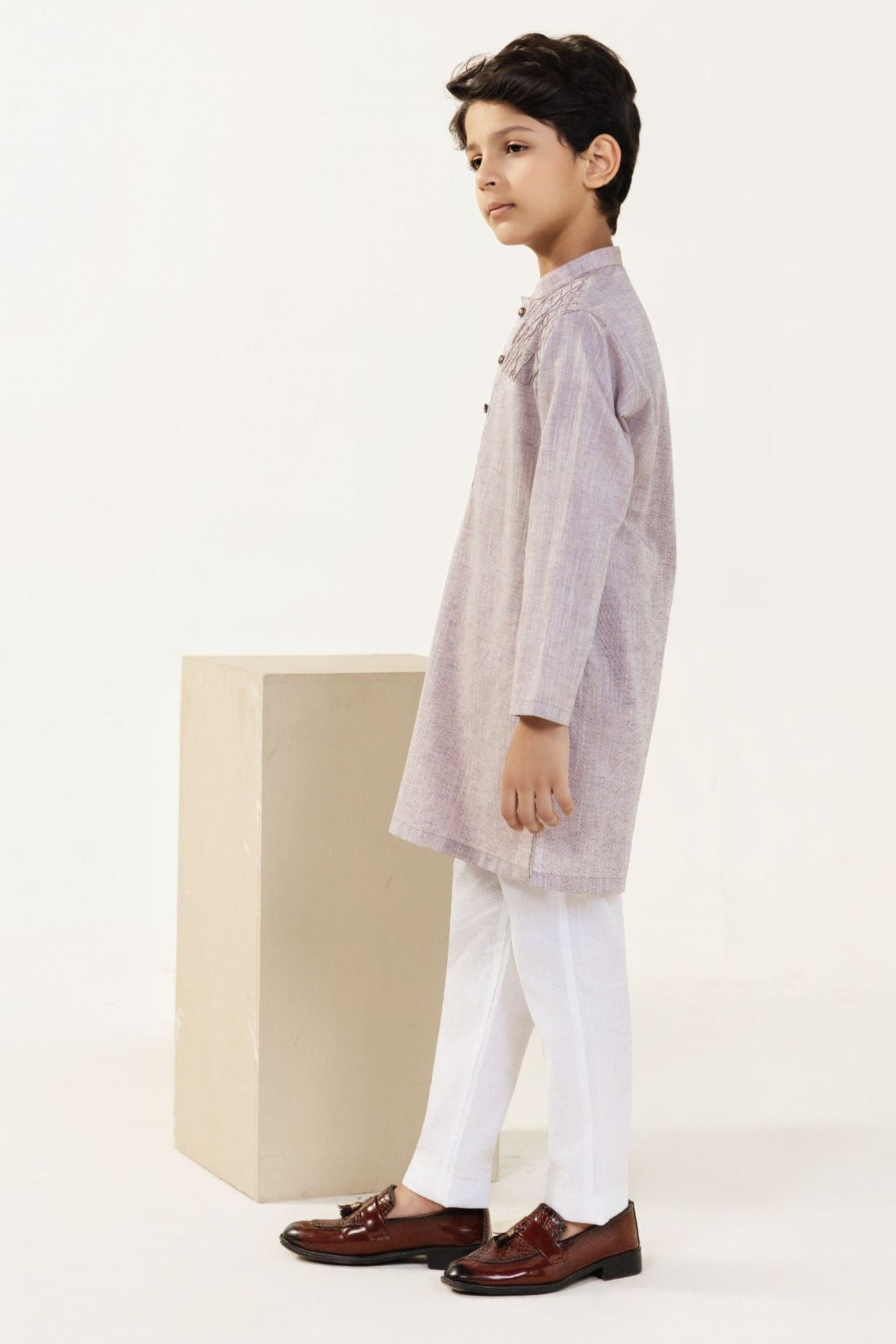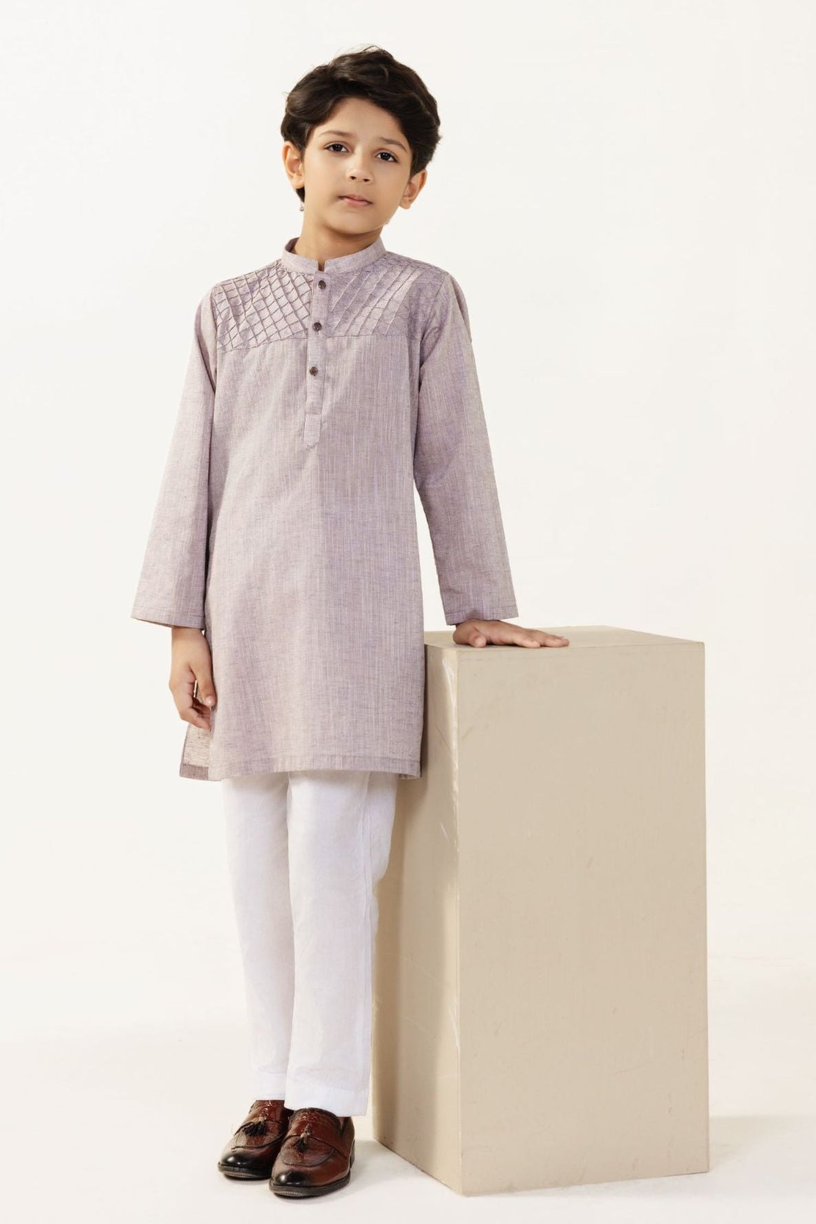 2PC STITCHED-PASTEL BROWN KIDS SUIT IST-38