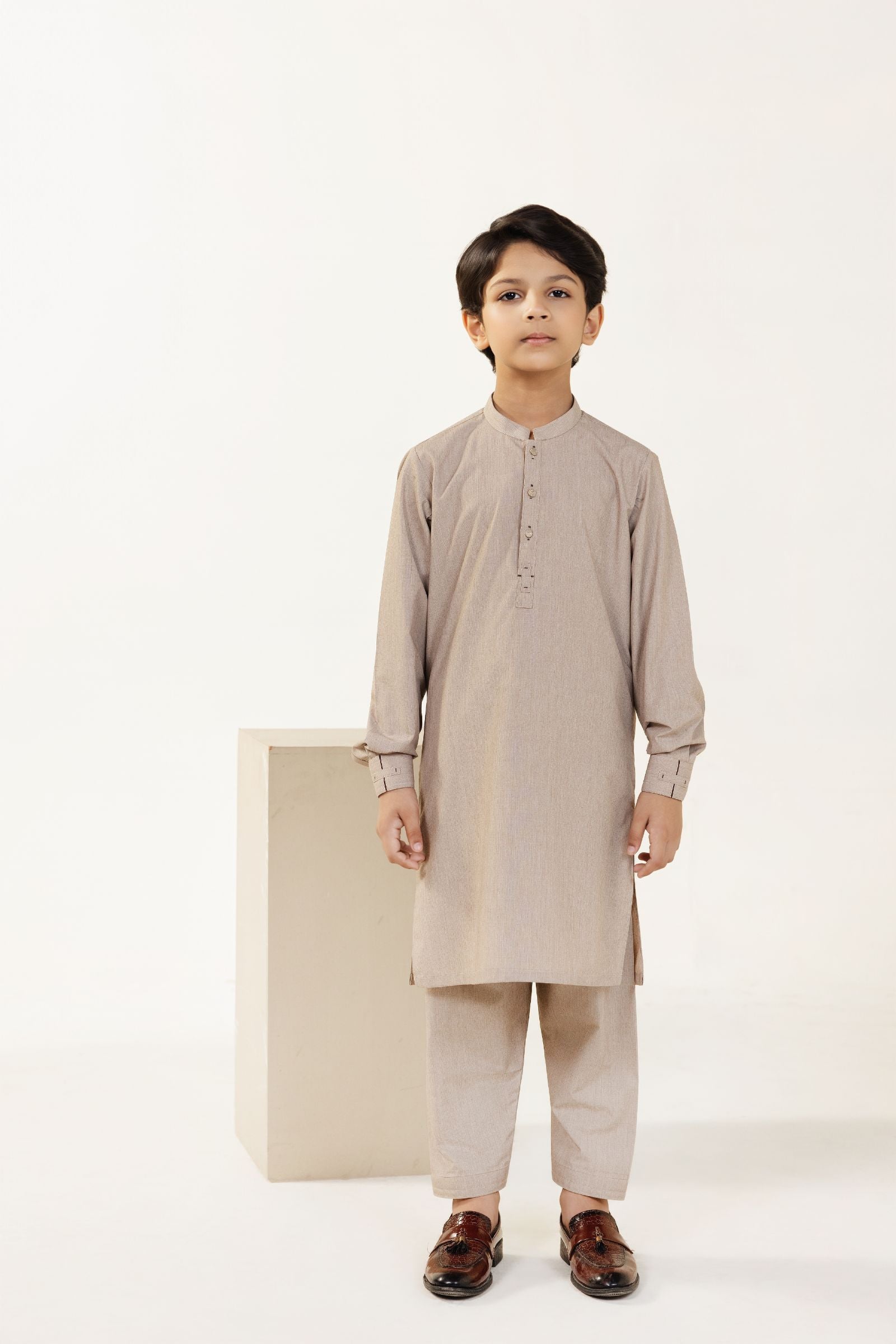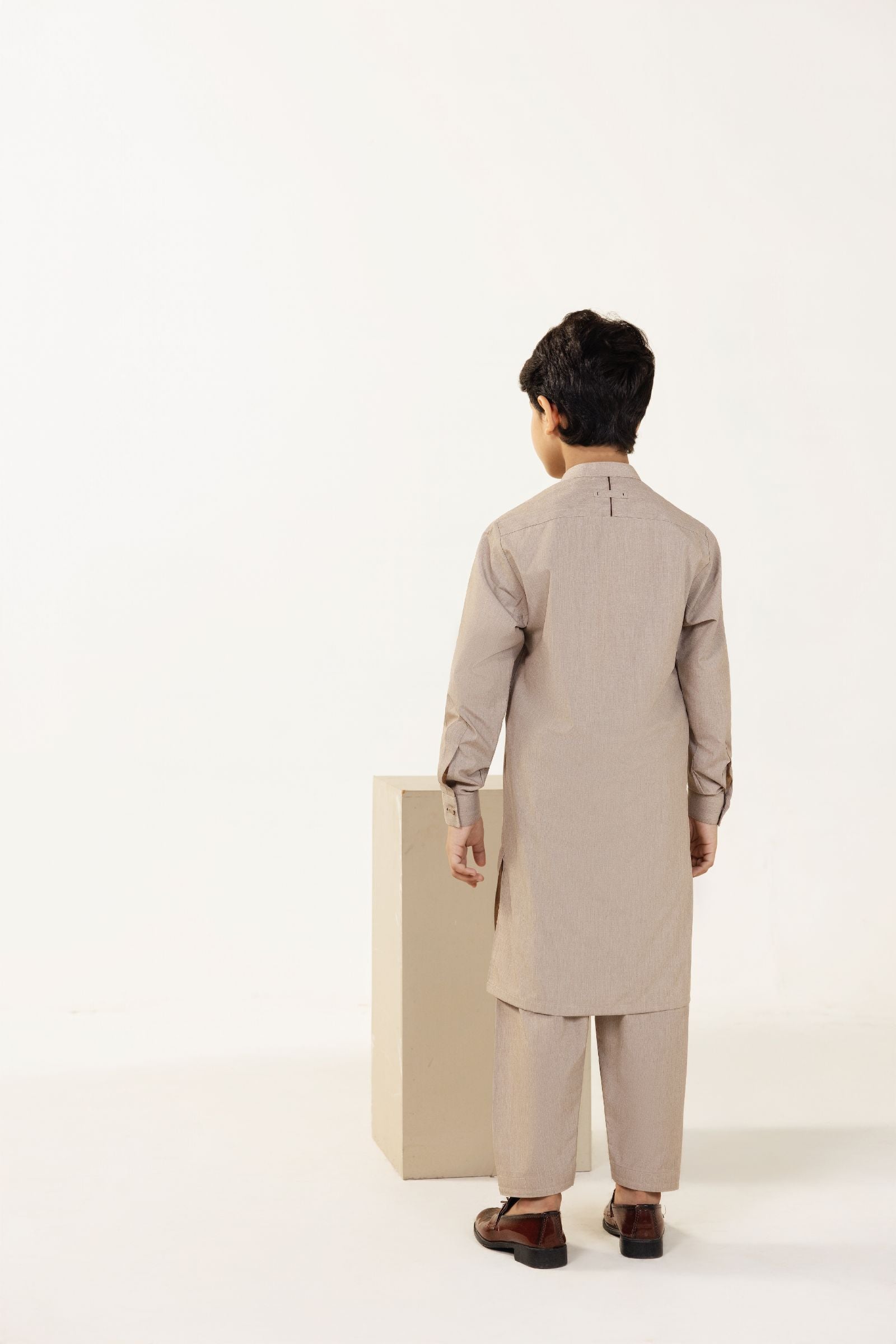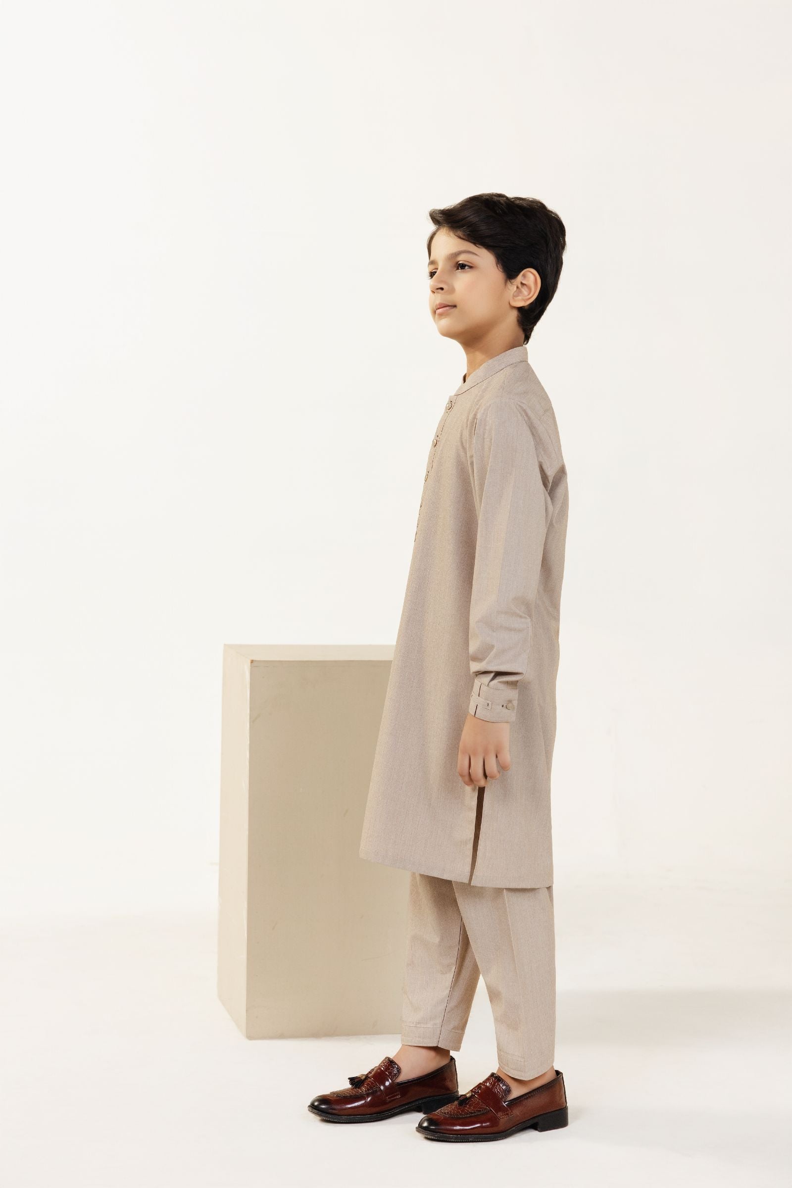 2PC STITCHED-PASTEL BROWN KIDS SUIT IST-38