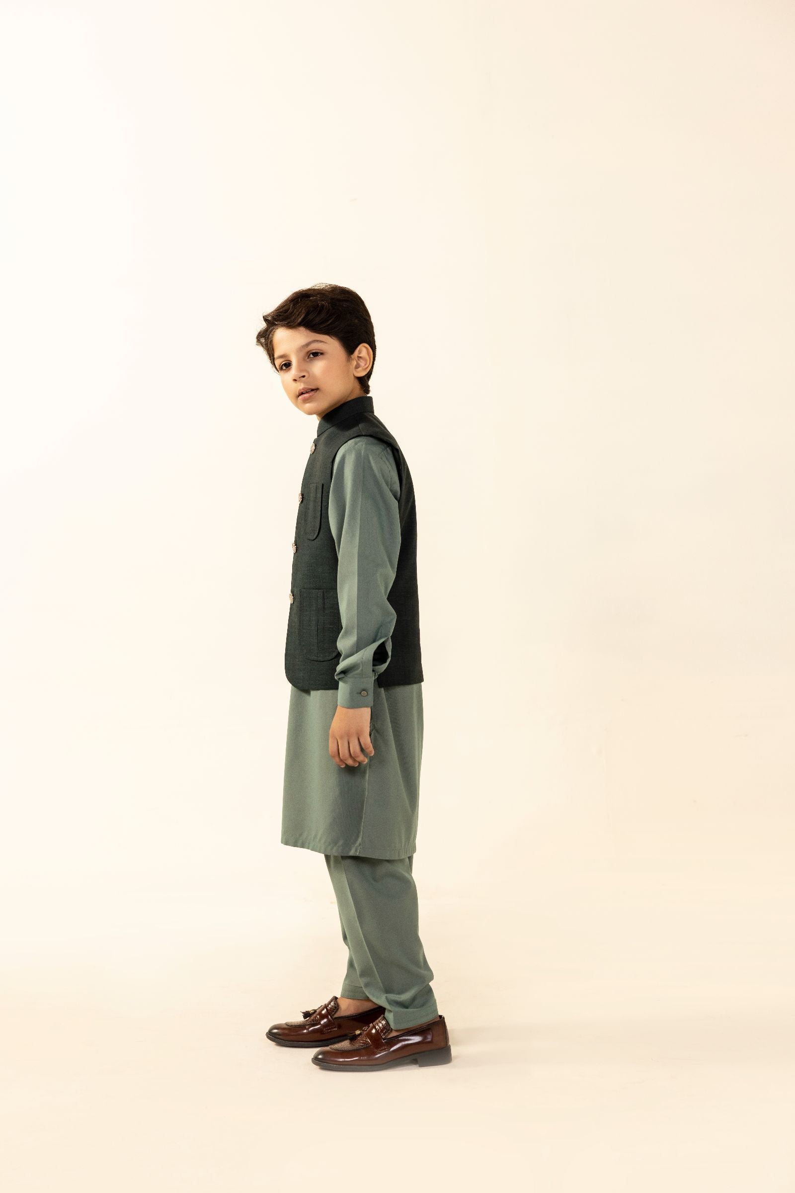 2PC STITCHED-GREEN KIDS SUIT IST-105